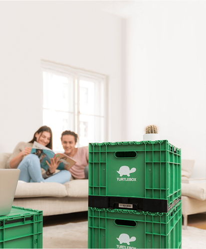 Die TURTLEBOX besteht zu 30 Prozent aus recyceltem Kunststoff, ist bruchsicher und besonders langlebig, die Entsorgung von Kartonagen entfällt. Im Vergleich zu einem herkömmlichen Umzugskarton reduziert sich die CO2-Emission so um 87 Prozent. Die Boxen sind passgenau stapelbar, was einen Umzug praktischer und schneller macht.